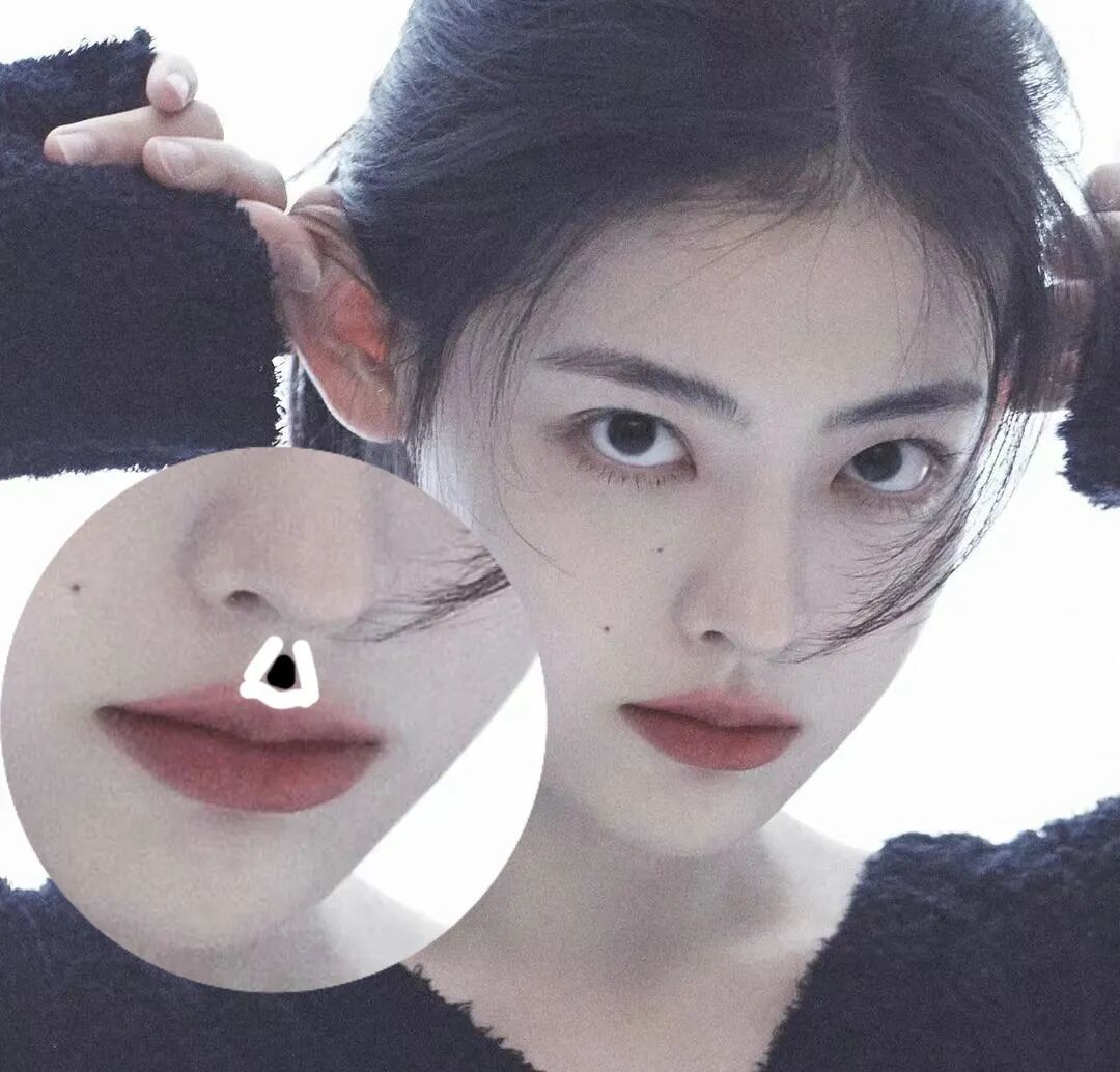 如果人中偏长别忘了提亮人中沟,画一个高光小三角,里面稍微来点阴影,就能让三庭的衔接更紧凑,避免下半张脸过长而显得笨重拖沓。