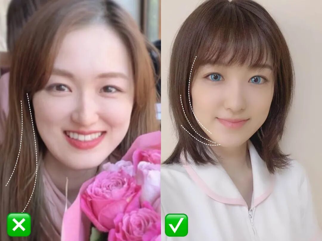 再搭配上轻微的凸嘴,或是偏厚的唇形,会显得下颌部位有些笨重,拉低整体的精致感。