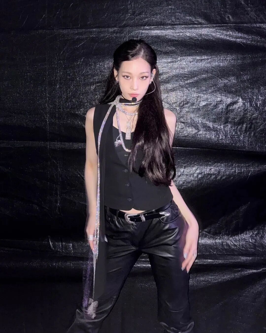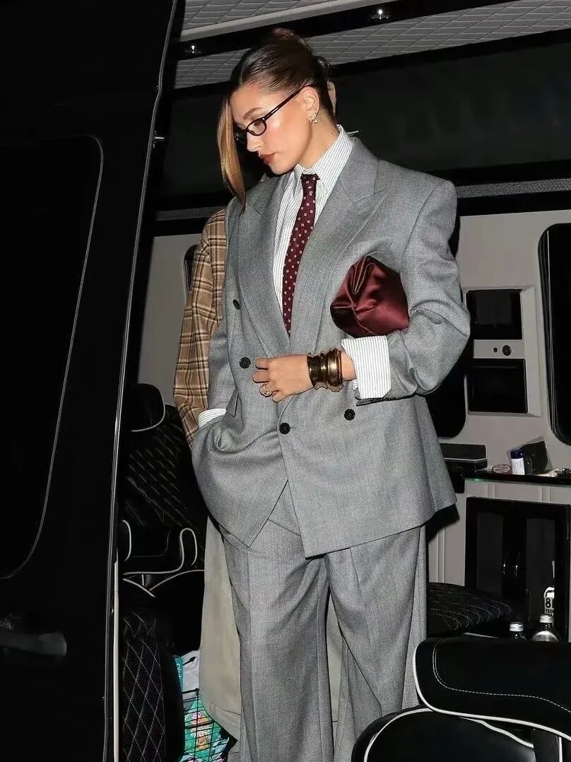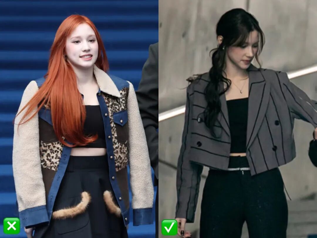搭配上直线条的服装,如利落的西装、长裙、运动长裤等,可以平衡马系脸自带的粗糙感,把硬朗的骨架线条,转化为财阀千金独有的冷艳气场。