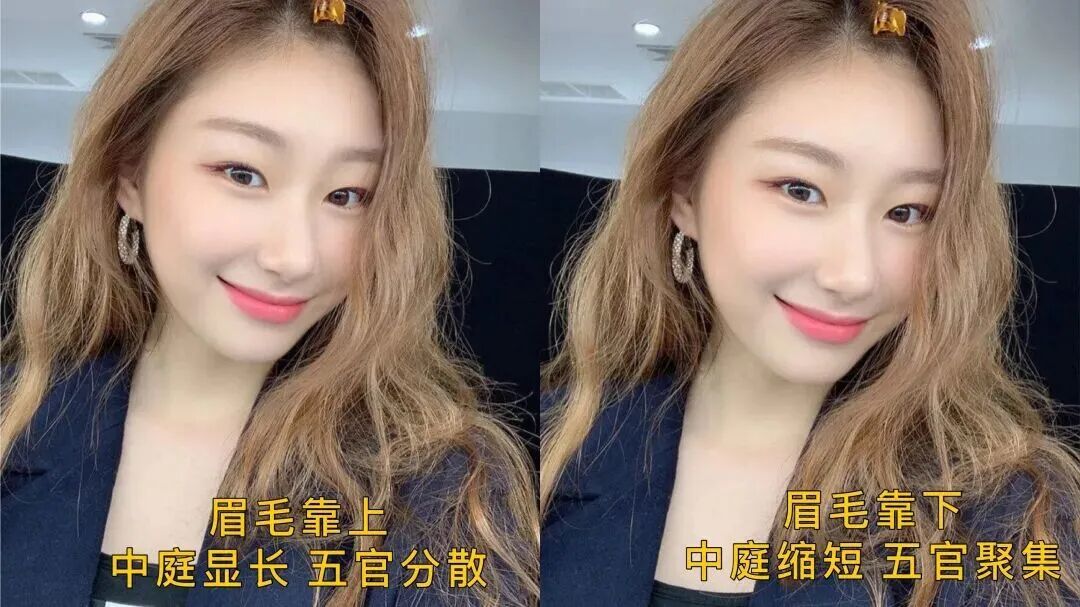 中庭偏长是马系脸最常见的问题,对应的变美思路也很明确——重点压缩中庭的纵向比例,同时提升五官的聚拢度。