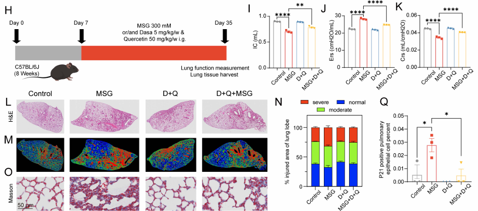 据悉,研究团队将实验小鼠随机分为三组:空白对照组、低剂量味精干预组(2%w/v)和高剂量组(4%w/v),通过饮水方式给予小鼠味精干预,模拟人类长期摄入味精的场景,并监测小鼠肺部功能、组织形态及相关炎症指标的变化。