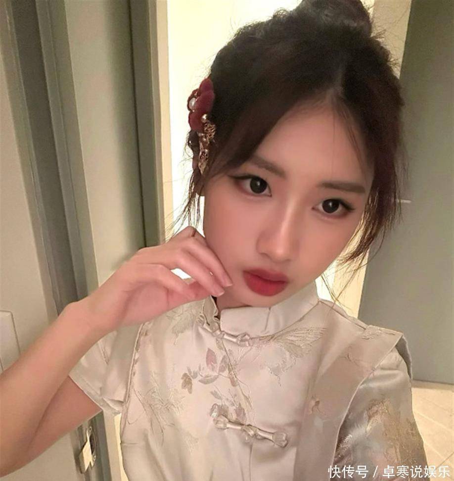 闺女徐朵也没闲着,不过人家忙的是另一码事——忙着自拍呢。小姑娘穿了身新中式的旗袍,往那儿一站,那气质噌就上来了。头上还别了个红色的发卡,看着特喜庆,特别应景。说实话,这丫头真是越长越开,女大十八变这话一点不假,小时候可能看着还牙有点凸,戴着厚眼镜,现在完全蜕变了,眉眼之间既有那种温婉的劲儿,又带着点自信。很多人说她现在越来越像妈妈徐帆了,尤其是那种淡然的气质,还真有那么点意思。